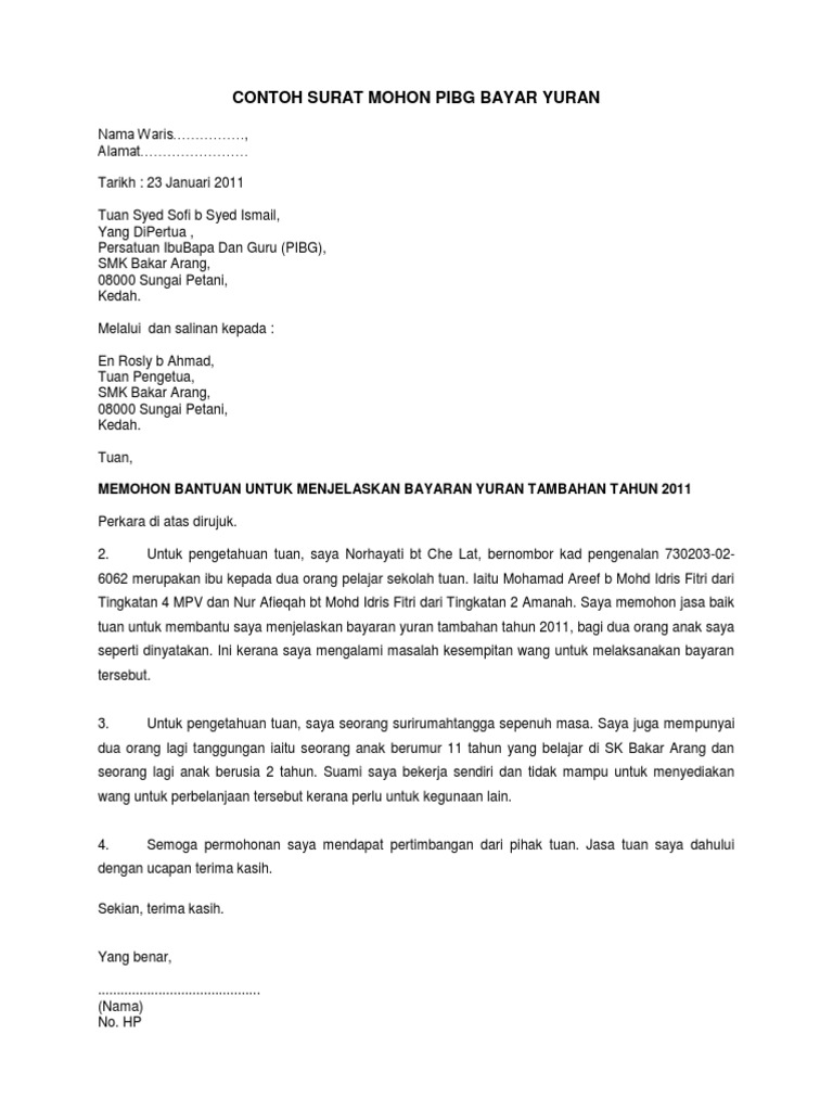 Surat Mohon Bantuan Bayar Yuran Pdf